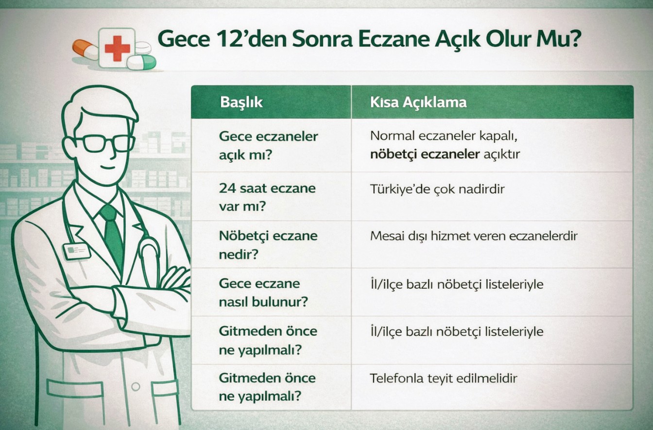 Gece saatlerinde ani bir sağlık ihtiyacı ortaya çıktığında en çok merak edilen sorulardan biri “Gece 12’den sonra eczane açık olur mu?” sorusudur. Özellikle ağrı kesici, ateş düşürücü, acil reçeteli ilaçlar veya bebek ürünleri gibi ihtiyaçlarda doğru bilgiye hızlı ulaşmak hayati önem taşır.